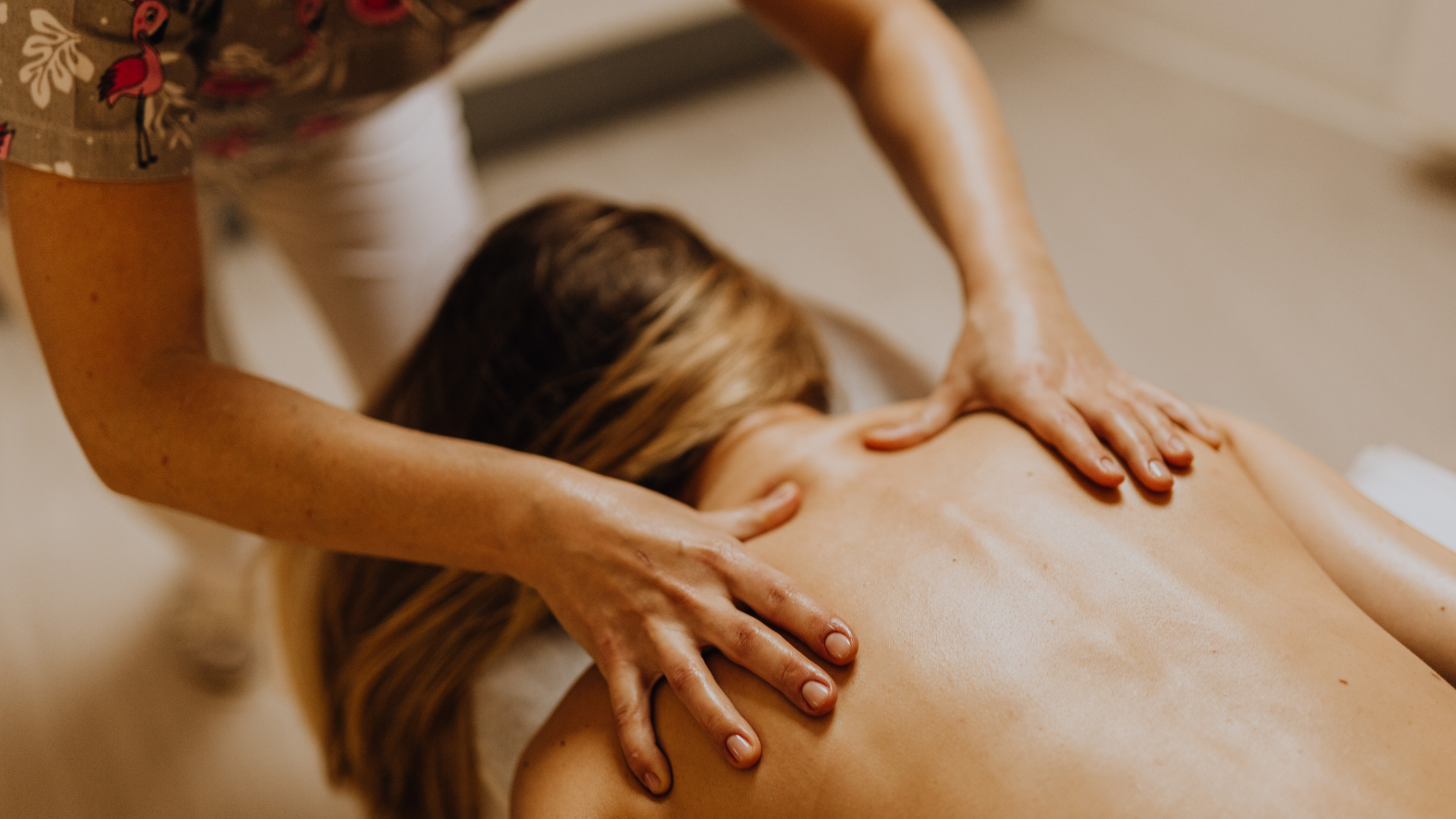 Woman receiving a back massage.